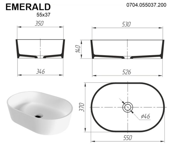 Раковина Whitecross Emerald 0704.055037.200 55см белый матовый