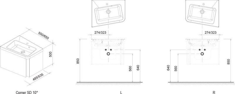 Ravak Тумба под умывальник SD 10° 550 R тёмный орех купить