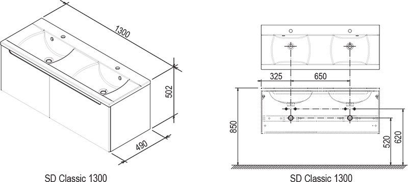 Ravak Тумба под умывальник SD-1300 CLASSIC береза/белая