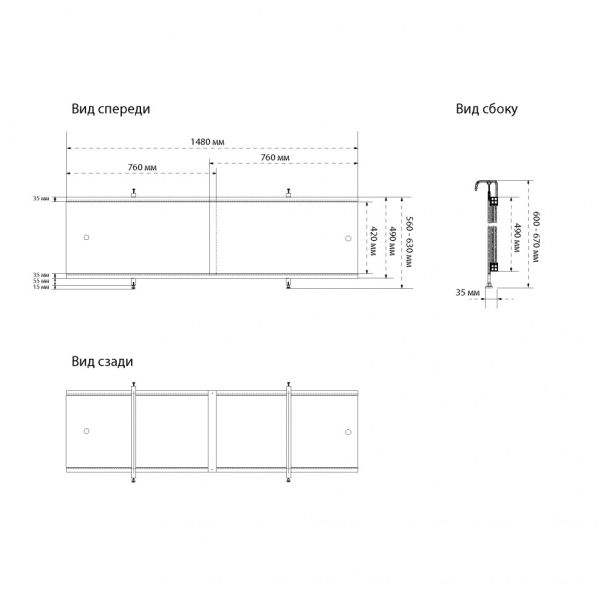 Раздвижной экран для ванны Triton Щ0000061955 148 см