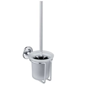 Подвесной ершик Timo Nelson прекрасно сочетается с различными предметами сантехники и другими аксессуарами. Этот полезный предмет имеет нехитрую конструкцию, представляющую собой удлиненную рукоятку, к которой крепится жесткая щетка. Для удобства хранения изделие комплектуется стаканчиком. Стакан для ерша выполнен из прочного стекла, с матовым белым напылением. Оправа из латуни класса А с покрытием из глянцевого хрома.Чистота и гигиена в ванной комнате имеют первоочередное значение, и, пожалуй, более необходимого предмета ее поддержания, чем туалетные ерши, не существует. Они эффективно используются для очистки внутренней поверхности чаши унитаза от различного рода загрязнений. Кроме того, такой аксессуар полезен для борьбы с известковыми отложениями, придания лоска и чистоты унитазу. Подвесной метод крепления - это современная версия напольной модели и считается наиболее удобной. На стену крепится подставка-стакан, в которую вставляется ершик. Закрепленный на стене ершик облегчает уборку туалета, так как немного освобождает и без того загроможденный в санузле пол. Кроме того, настенным туалетным ершиком удобно пользоваться пожилым людям, которым трудно наклоняться к полу.