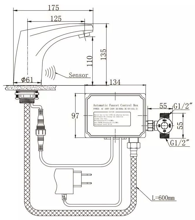 Raiber RSF88121Предлагаем вашему вниманию коллекцию сенсорных смесителей торговой марки Raiber. При создании новой коллекции акцент был сделан на высоком качестве и более современном дизайне. Все наши смесители выполнены из прочной латуни, поэтому несмотря на повышенную нагрузку, такие смесители надежно прослужат Вам не одно десятилетие. Мы даем гарантию на бесперебойному работу смесителей Raiber 5 лет. Коллекция Sensor- это ультрапродвинутая линейка сенсорных смесителей, устройств, которую по достоинству оценят любители современных гаджетов и последних достижений техники. Аэродинамическая совершенная форма, надежность системы датчиков и удобное управление характеризует эту коллекцию. Мы используем немецкие технологии производства с учетом последних достижений и разработок. Вы получаете продукцию на самом высоком уровне качества и дизайна. Преимущества сенсорных смесителей для раковины: материал – латунь прочный и экологичный, хромированное покрытие сенсорного смесителя гарантирует стойкость к стиранию и зеркальный блеск. Работает как от сети, так и от батареек. Дизайн Сенсорных смесителей для горячей и холодной воды для умывальника/мойки/раковины изящные, подойдут под разные интерьерные решения. Время срабатывания клапана не более секунды. Также имеется влагозащищенное соединение с блоком питания. Отсутствие рычагов и вентилей избавляет от поломок и вынужденного постоянного ремонта сенсорного смесителя. Смеситель бесконтактный для умывальника соответствует высоким санитарно-гигиеническим требованиям. Смеситель сенсорный подходит для установки не только в ванные комнаты домов и квартир, но и в общественные туалеты. Прибор не потеряет первоначального эстетичного вида и эксплуатационных свойств даже при интенсивном использовании. В комплект сенсорных смесителей идет: смеситель,блок,регулятор для воды,подводка 60см _1шт, монтажный набор,гарантийный талон. В кухонных сенсорных смесителях, подводка 1/2 гайка-гайка 60см, для раковины -подводка 1/2, гайка штуцер 60 см. Устройство для Писсуара работает без регулятора, так как работает на холодный воде.Регулятор подключается к блоку, подключение воды идет к регулятору с двумя подводками (не входят в комплект), где регулируется желаемая температура для использования воды, вода выходит из блока уже с регулируемой желаемой температурой в смеситель с помощью подводки которая входит в комплект. Смесители работают,как от сети так и от батареек, устройство работает на батарейках 4шт( пальчиковых). Батарейки в комплект не входят.