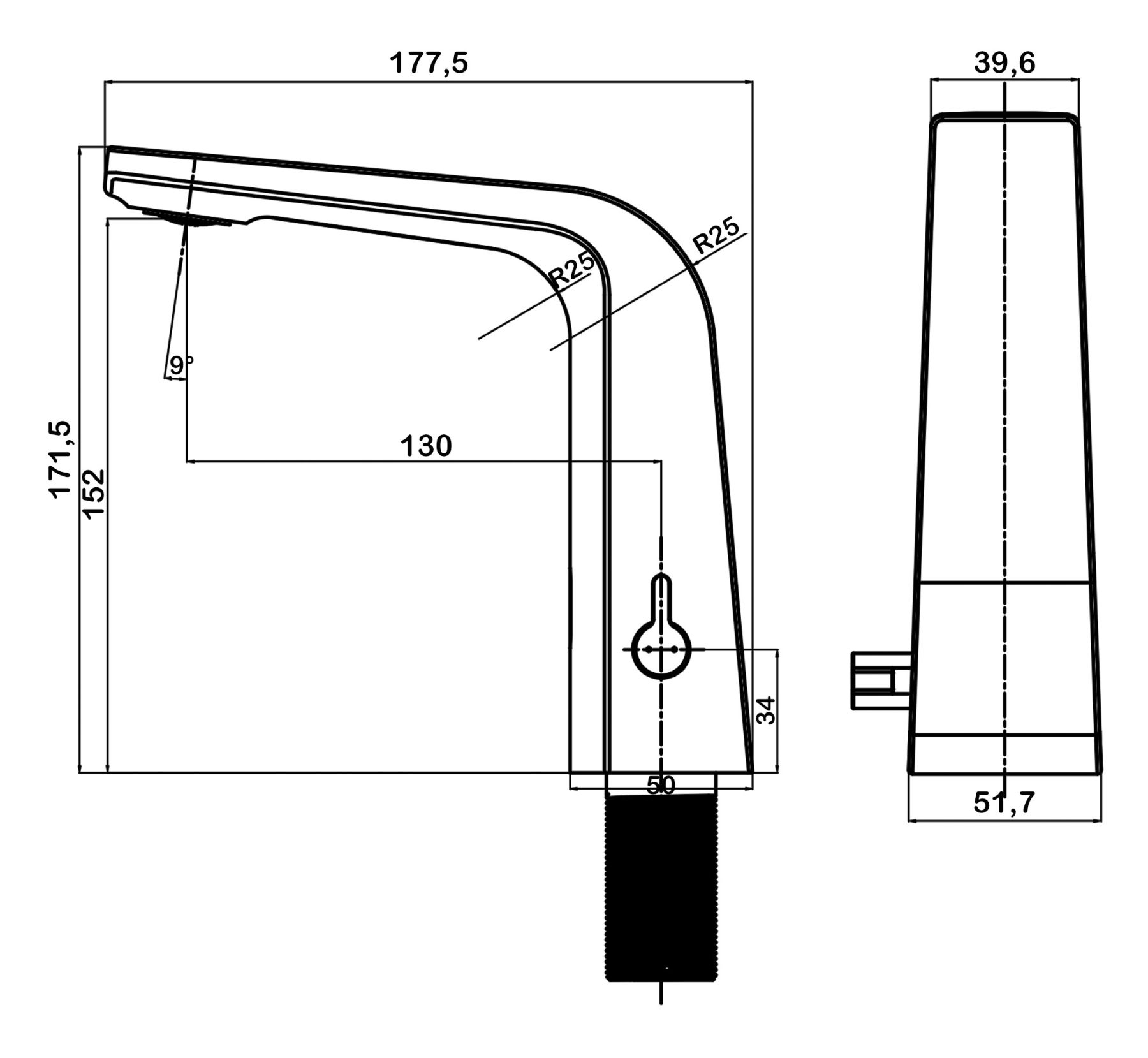 • Высота смесителя: