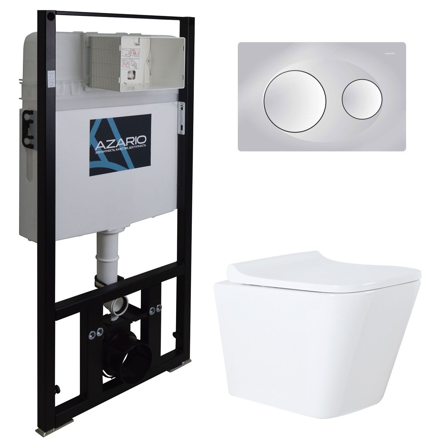 Сет AZARIO Teramo AZ-8010-1000+AZ-8200-0010+AZ-0052 инсталляция + унитаз Teramo (квадратный) с быстросъемным сидением микролифт + клавиша смыва хром матовый купить