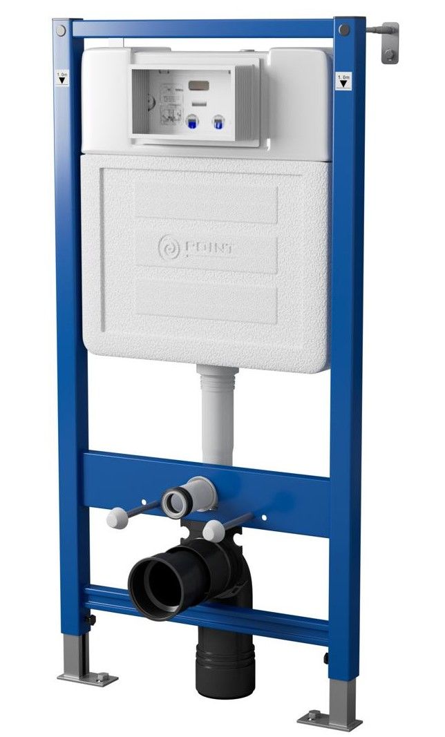 Инсталляция для унитаза. Рама инсталляции изготовлена из стали и покрыта прочной порошковой антикоррозионной краской. Отличительная особенность данной системы инсталляции - возможность регулировки по высоте на 20 см с помощью ножек из оцинкованной стали. Бачок скрытого монтажа выполнен из полимерного материала HDPE, что соответствует ведущим Европейским стандартам. Для защиты от конденсата, а также обеспечения бесшумной работы, резервуар скрытого монтажа обшит пенопластом.