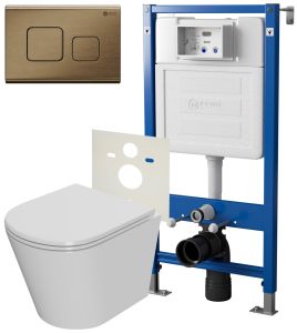Сет: Система инсталляции Point Элемент для подвесного унитаза PN45120 + Клавиша смыва для инсталляции Point Афина, бронза брашированная, PN44041BB + Унитаз подвесной Point Виктория безободковый, сиденье микролифт PN41061