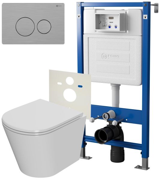 Сет: Система инсталляции Point Элемент для подвесного унитаза PN45120 + Клавиша смыва для инсталляции Point Виктория, нержавеющая сталь, сталь брашированная, PN44061SB + Унитаз подвесной Point Виктория безободковый, сиденье микролифт PN41061