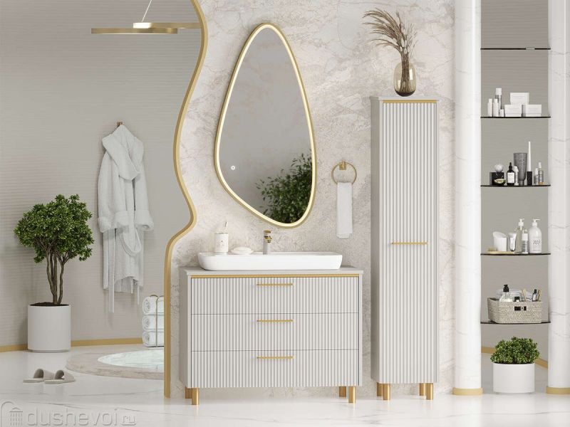 Шкаф - пенал Brevita Elche 35 R ELC-05035-010R Серый кашемир Золото Уникальные формы и гармоничные линии коллекции Elche гармонично сочетают в себе элегантность и практичность, создавая неповторимую атмосферу уюта и роскоши. Каждый предмет мебели для ванной из коллекции Elche изготовлен из высококачественных материалов, прошедших строгий контроль качества, что гарантирует их долговечность и надежность. Влагостойкие фасады, прочная фурнитура и износостойкие поверхности - все это обеспечивает максимальный комфорт и удобство в использовании на протяжении долгих лет. Характеристики: