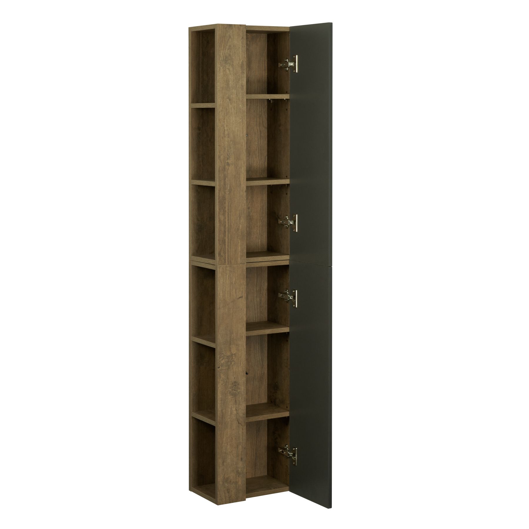 • Корпус выполнен из высококачественной декоративной влагостойкой ЛДСП дуб кантри, фасад - из МДФ в пленке цвета антрацит, что позволяет защитить поверхность колонны от внешних воздействий
