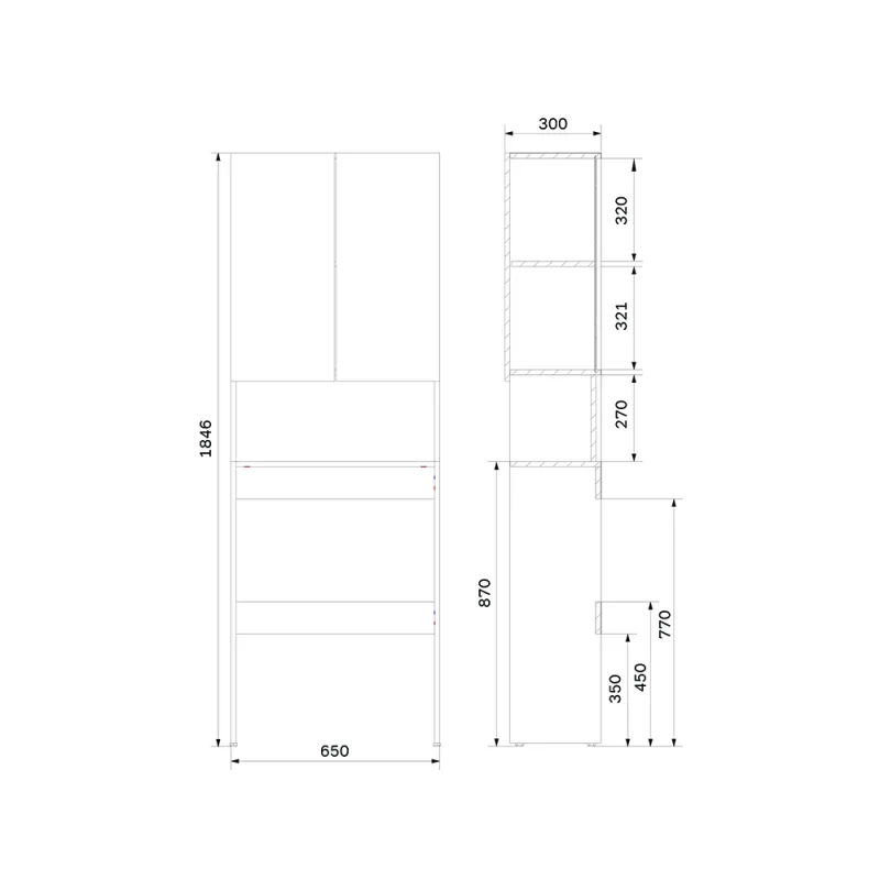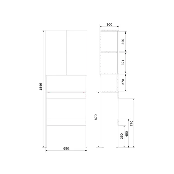 • Возможность установки над стиральной машиной:
