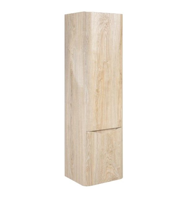 Шкаф пенал для ванной комнаты Runo Тоскана (подвесной) - выполнена в ультрасовременном дизайне в цвете светлое дерево. Пенал отличается изысканным дизайном, скруглённые углы, древесная текстура фасада, врезная ручка – придают шкафу необычный и незабываемый внешний вид. Шкаф в ванную комнату оснащён двумя распашными дверцами, в верхнем отделении две встроенные полки. Каждая дверца укомплектована двумя петлями, верхняя с доводчиком, нижняя без доводчика. Мебель для ванной RUNO - красота и практичность в мелочах!
