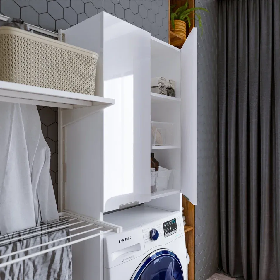 Шкаф над стиральной машиной Бриклаер Хелена 64 см, белый глянцевый, 4627125416385