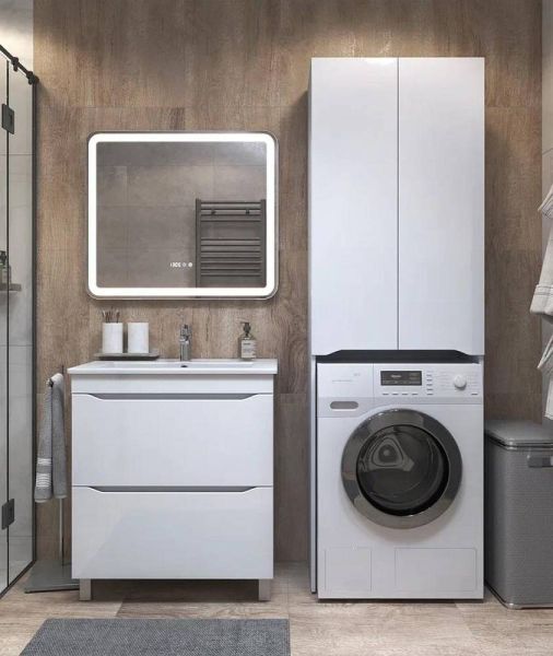Шкаф под стиральную машину VIGO Grani белый, 64 см. Высота: 199 см. Ширина: 64 см. Глубина: 35,9 см. Монтаж: напольный. Материал фасада: МДФ. Материал корпуса: ЛДСП.