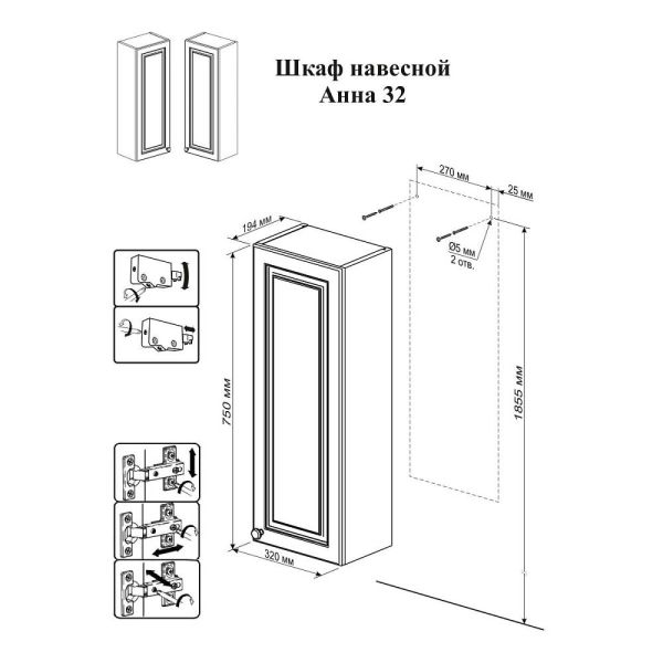 Шкаф навесной Бриклаер Анна 4627125411526 левый 32 см белый купить