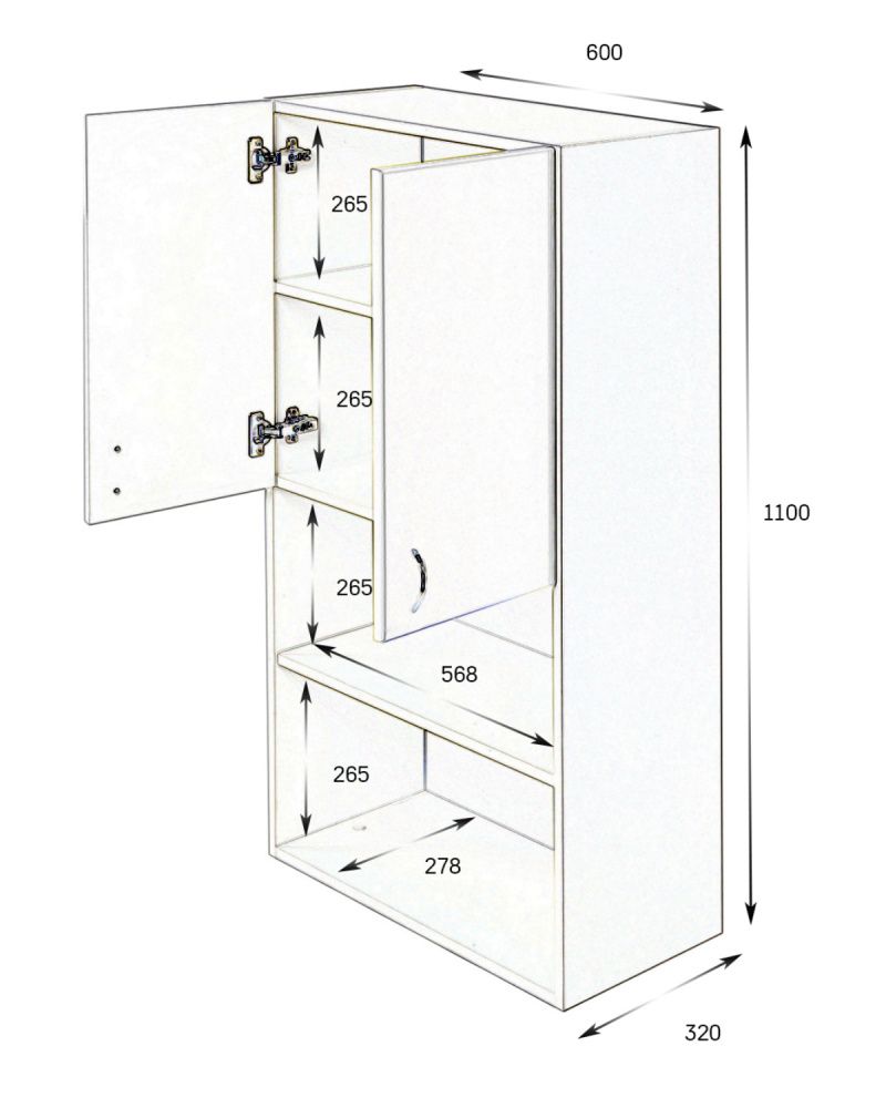Габариты (ШхВхГл): 60х110х32 см