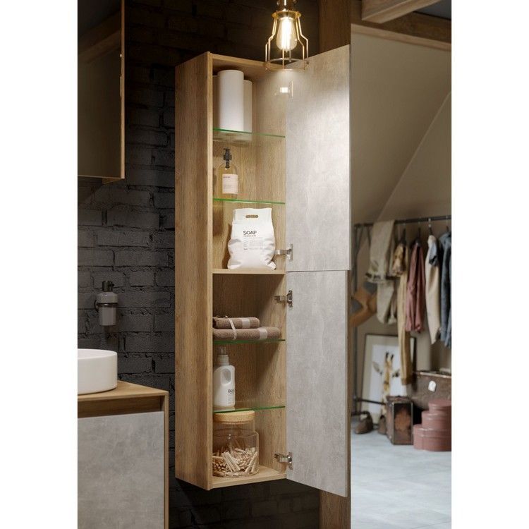 Шкаф-пенал Aqwella Mobi MOB0535W+MOB0735BS подвесной 36.5 смПодвесной пенал 36,5 см с двумя дверьми с системой открывания «push-to-open». Цвет белый/бетон светлый