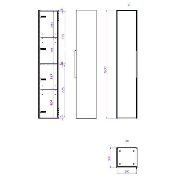 Пенал LA FENICE SIMPLA 30,5 FNC-05-SIM-G-30 (подвесной, 30,5*30*160, серо-зелёный матовый), шт