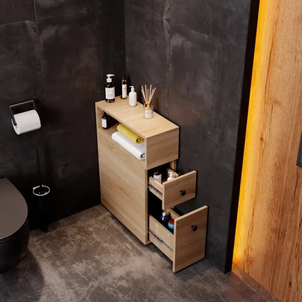 Узкий полупенал Onika Кроун 20 — отличная альтернатива привычным открытым полкам: он позволяет максимально скрыть весь визуальный шум от разноцветных упаковок средств, применяемых в быту. Пенал подходит для размещения в даже в очень компактном пространстве, теплый цвет светлого дуба удачно впишется в любой интерьер.