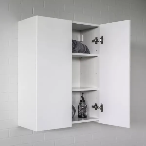 Габариты (ШхВхГ): 600*800*300 ммУниверсальный подвесной шкаф шириной 60 см может использоваться как в ванной комнате, так и в других помещениях. Это отличное решение для хранения разных предметов. За створками две горизонтальные полки. Петли с механизмами плавного закрывания.