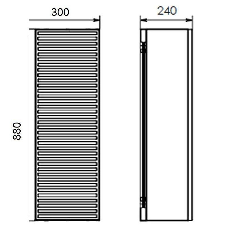 Габариты тумбы с раковиной (ШхВхД): 300х880х240 мм.