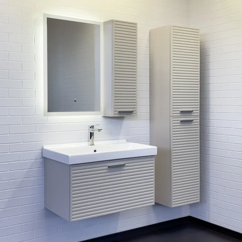 Шкаф подвесной Comforty Касабланка 00-00017849 серый шелк 25 смСтворка оснащена петлями с плавным закрыванием. За створкой две горизонтальные полки. Фасад тумбы из МДФ фрезерован горизонтальным узором и обтянут в пленку цвета серый шёлк. В комбинации с зеркалом Эдельвейс шкаф можно подвесить в правом варианте.