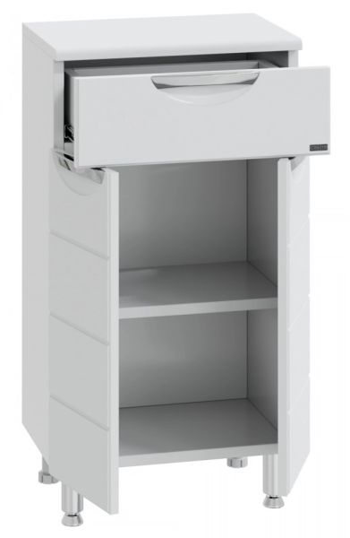 Корпус шкафа влагостойкий, выполнен из ЛДСП, фасад - из МДФ в пленке, устойчивых к механическим воздействиям, перепадам температур и высокой влажности.