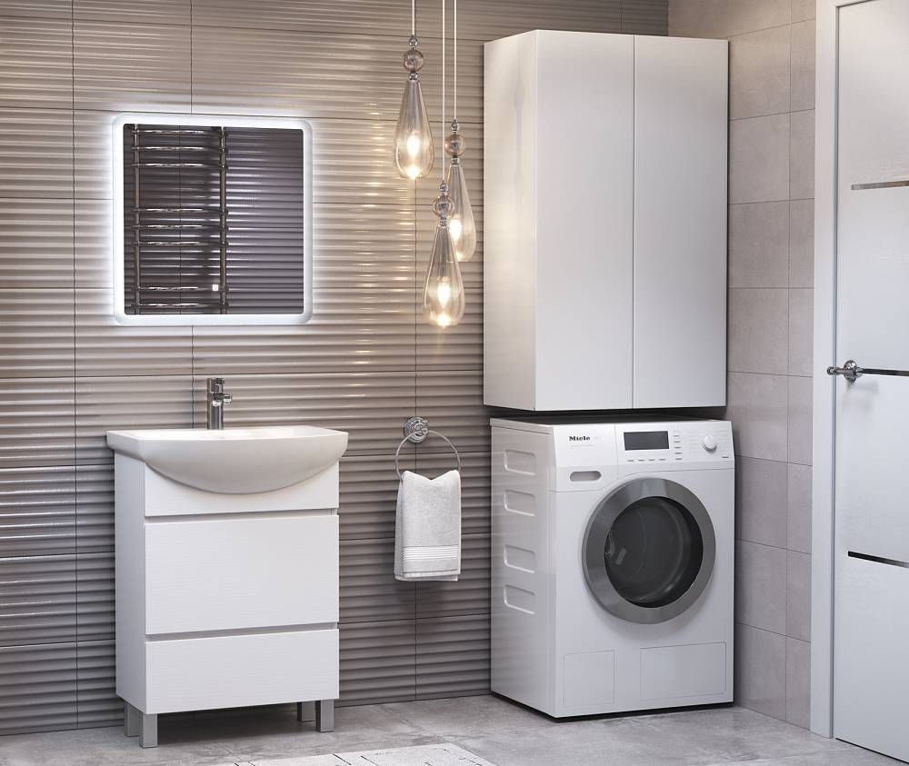 Шкафы Wing – идеальное решение, позволяющее сэкономить пространство ванной комнаты за счет размещения над стиральной машиной
