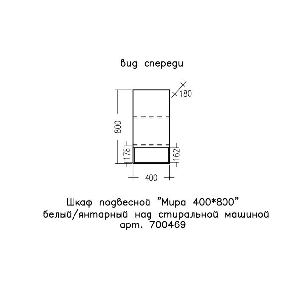 Шкаф Санта Мира 700469 над стиральной машиной 40 см разобранный янтарный/белый