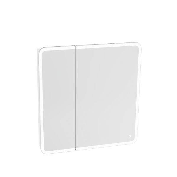 Зеркальная дверь с LED подсветкой и сенсорным выключателем создаст уют и дополнительное освещение, а пространство за распашной правой зеркальной дверцей, оснащенной механизмом плавного закрывания, станет удобным местом для хранения принадлежностей.