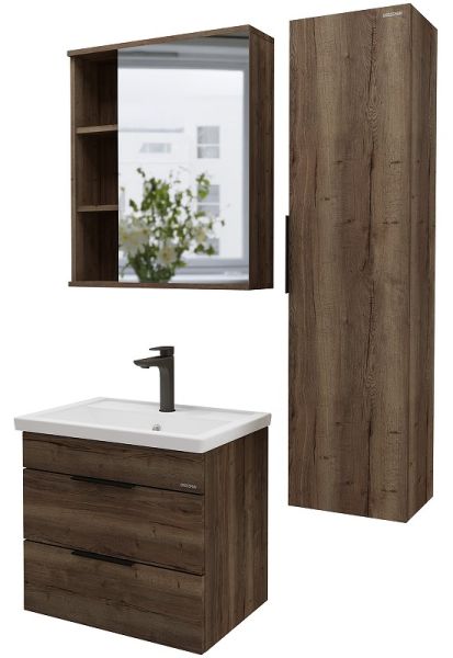 Шкаф-зеркало Форта 60 см - роскошная текстура и темный цвет дуба придают зеркалу сочетание современного дизайна.