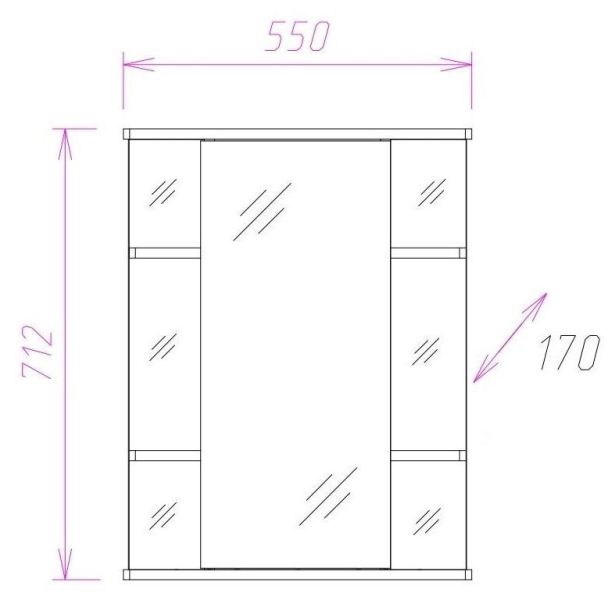 Корпус шкафа-зеркала выполнен из ЛДСП, фасад - из ЛДСП и ЛМДФ в пленке, устойчивых к механическим воздействиям, перепадам температур и высокой влажности.