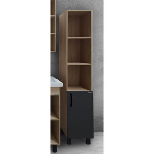 Занимая минимум места в ванной комнате, шкаф позаботится о хранении необходимых мелочей: за простой зеркальной дверцей без декора скрывается просторная зона, разделенная горизонтальной полочкой.