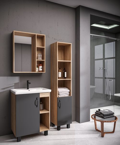 Шкаф-зеркало выполнен из ЛДСП, устойчивой к механическим воздействиям, перепадам температур и высокой влажности.