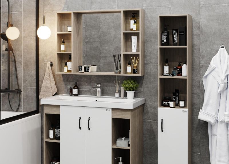 Зеркальный шкаф Onika ТИМБЕР 100 отражает современные тенденции в дизайне мебели для ванных комнат: минимализм с простыми и понятными формами, цвета дуба с роскошной текстурой, отсутствие лишних деталей.