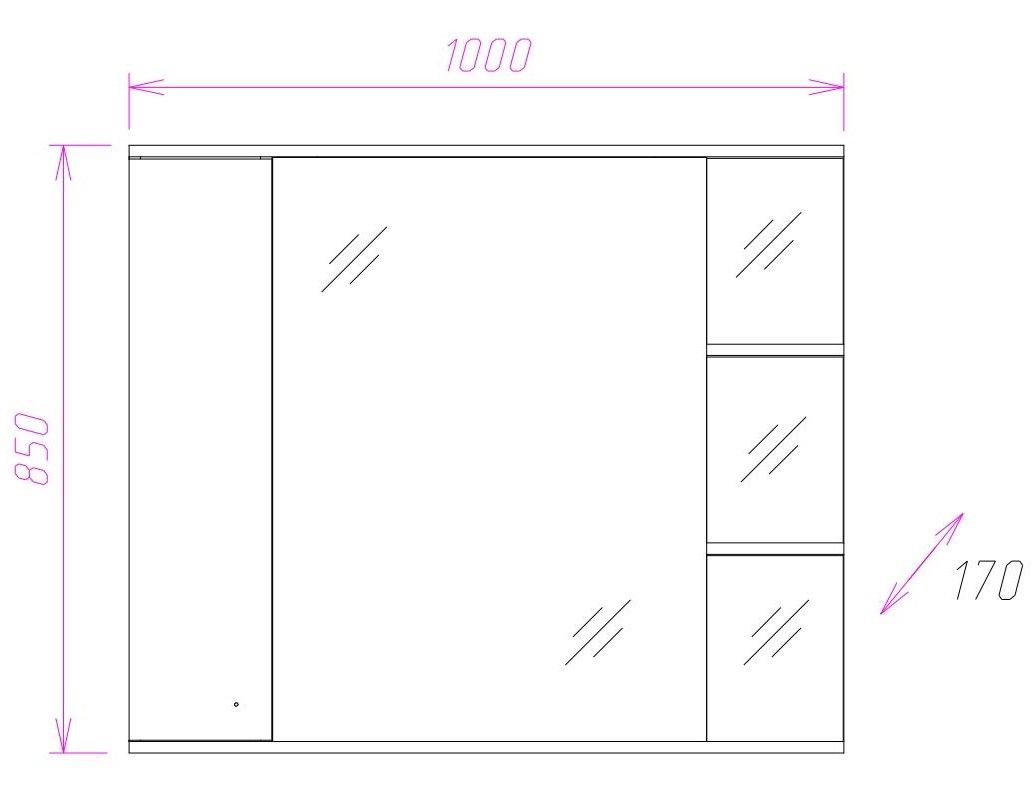 В зеркальном подвесном шкафе Onika ЭЛЬБРУС 100 белоснежный глянец фасада подчеркивается оригинальной хромированной фурнитурой и простой изысканной геометрией линий.