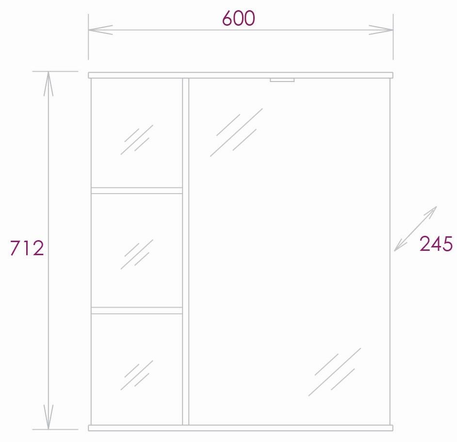 Шкаф-зеркало с подсветкой Onika Карина 206010 правый 60см белый