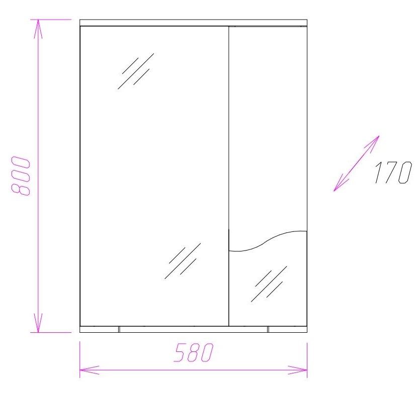 Шкаф-зеркало с подсветкой Onika Лайн 205820 правый 58см белый