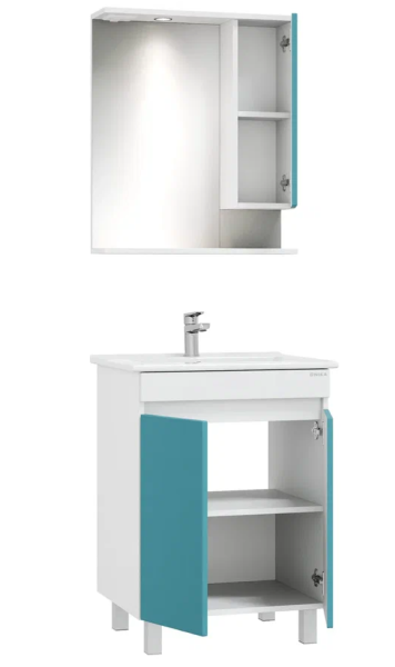 Навесной зеркальный шкаф Марви 60 нежного бирюзового цвета добавит интерьеру яркие краски и придаст ванной комнате ощущение свежести, чистоты и уюта.
