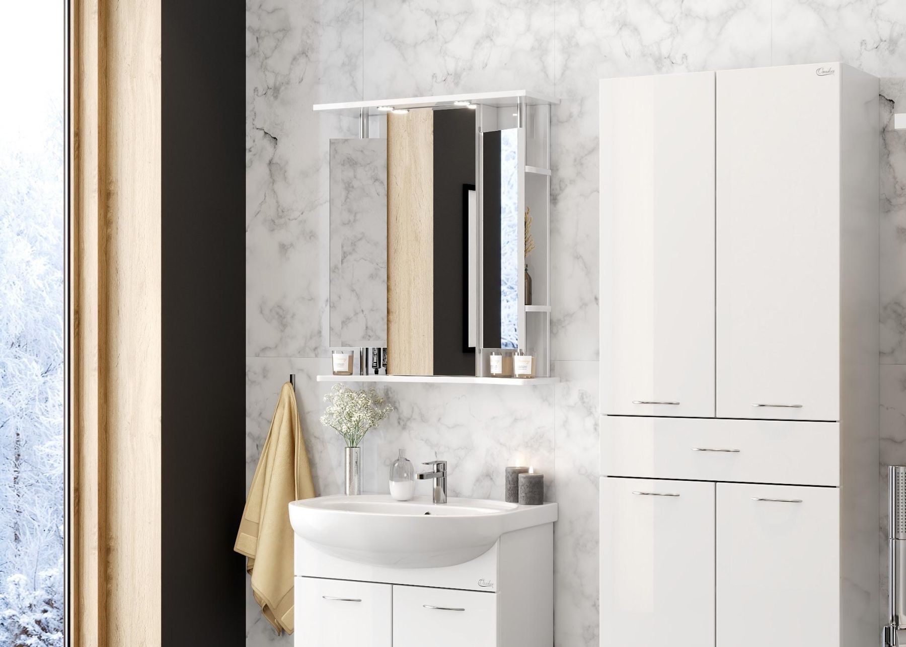 Шкаф-зеркало с подсветкой Onika Валерия 206505 правый 65см белый
