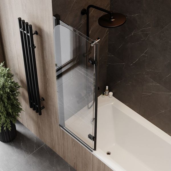 Душевая штора на ванну Maretti Valentina VA41R100140097-560 изготовлена из травмобезопасного закаленного стекла толщиной 6 мм с водоотталкивающим защитным покрытием "антикапля". Изделие имеет 100% защиту от коррозии что гарантирует максимально длительный срок его эксплуатации. Шторка на ванну Maretti Valentina VA41R100140097-560 имеет прозрачное стекло, профиль, окрашенный в черный матовый цвет, изготовленный из алюминия. Шторка имеет две створки: пристенную, которая крепится к стене, и распашную, дополненную двумя поворотными держателями, которые имеют радиус поворота 180 градусов наружу и 45 градусов внутрь. Пристенная часть шторки вставляется в вертикальный п-образный профиль, который крепится к стене при помощи саморезов, и фиксируется на профиле с помощью двух шурупов. Пристенная часть шторки является подвижной и имеет ход открывания до 135 градусов. Это позволяет складывать и открывать створку как наружу, так и внутрь, даже если вплотную к ванне находится раковина, тумба или иной предмет интерьера. Такая конструкция делает использование шторки очень комфортным. Размеры изделия 100 х 140 см.