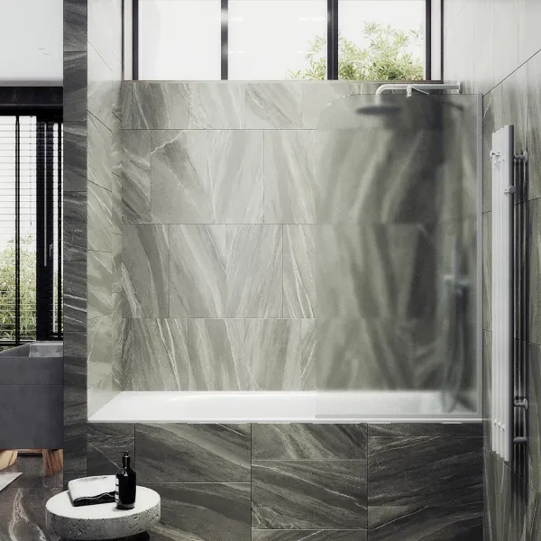 Монтаж осуществляется с помощью алюминиевого профиля, что обеспечивает надежность крепления и безопасность использования стеклянной перегородки для ванной. Также, шторка оснащена специальным уплотнителем, который предотвращает попадание воды на пол ванной комнаты. Закаленное стекло, цвет Сатин, толщина 8 мм 1400х300 мм - 1 шт.