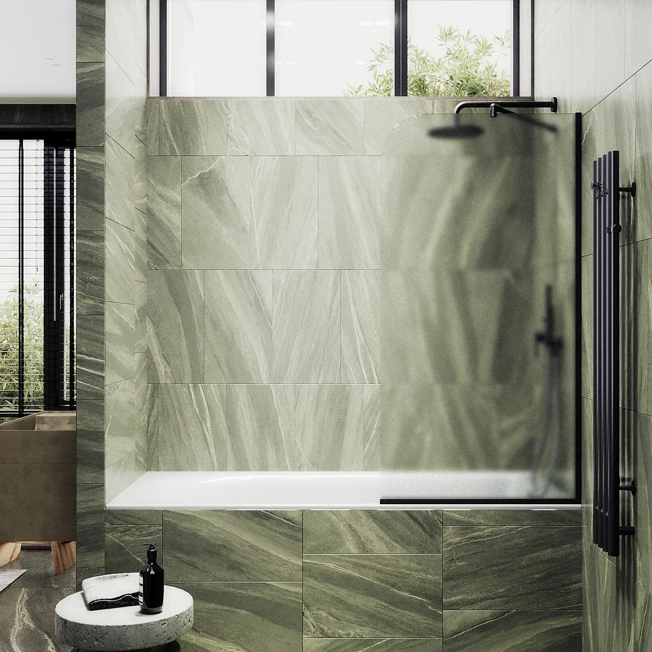 Монтаж осуществляется с помощью алюминиевого профиля, что обеспечивает надежность крепления и безопасность использования стеклянной перегородки для ванной. Также, шторка оснащена специальным уплотнителем, который предотвращает попадание воды на пол ванной комнаты. Закаленное стекло, цвет Сатин,толщина 8 мм 1400х700 мм - 1 шт.