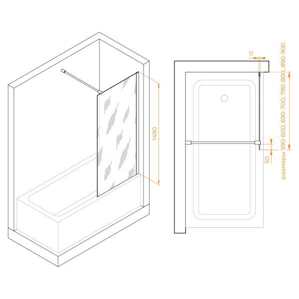 Шторка на ванну RGW SC-050 351105007-11 70см хром