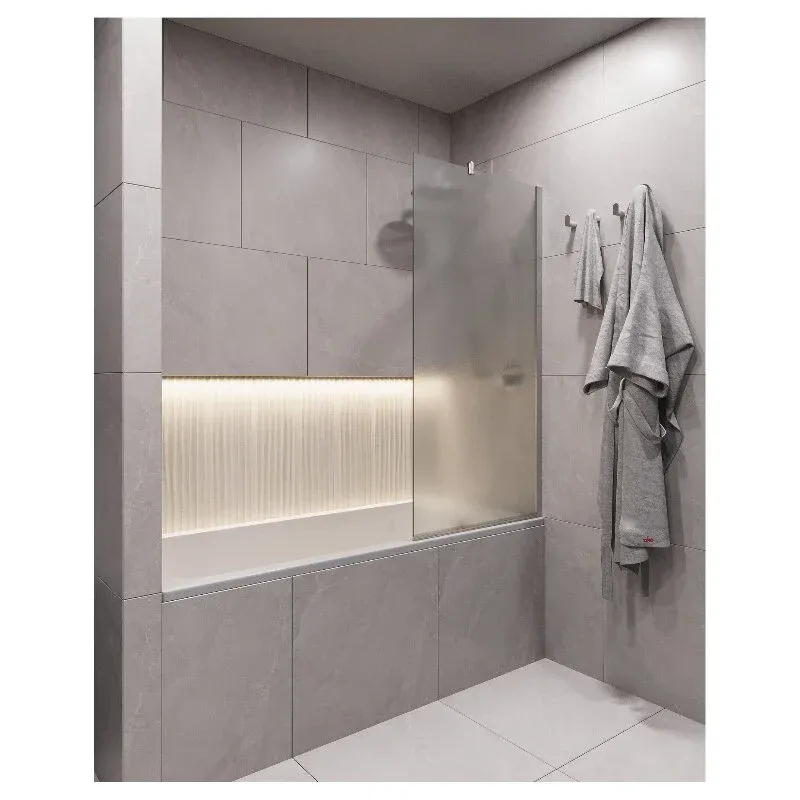 Шторка на ванну Timo T22, 90 см, стекло матовое, профиль хромСтеклянные шторки на ванну Timo - идеальное сочетание стиля и функциональности. Современные стеклянные шторки изготавливаются из закаленного стекла. Это стекло не только прочное и устойчивое к механическим повреждениям, но и обладает высокой термостойкостью. Монтаж стеклянной шторки осуществляется с помощью алюминиевого профиля, что обеспечивает надежное крепление и простоту установки. Стеклянные шторки для ванны обладают привлекательным внешним видом и могут стать ярким акцентом в интерьере. Их прозрачность создает эффект легкости и позволяет визуально увеличить пространство ванной комнаты. Существует множество вариантов оформления и отделки алюминиевого профиля, что позволяет подобрать идеальное сочетание под любой стиль. Еще одним важным аспектом, который стоит отметить, является наличие специального уплотнителя, который предотвращает попадание воды на пол ванной комнаты. Уплотнитель обеспечивает надежную защиту от брызг, сохраняя при этом эстетичный вид шторки.