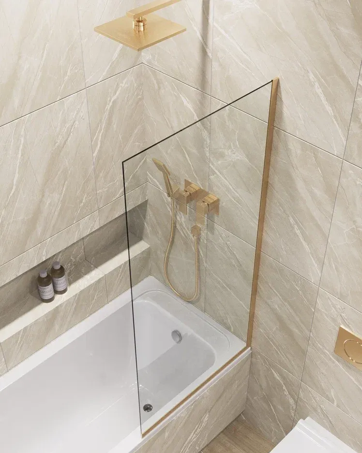 Шторка на ванну в профиле by Deonria C-140-80-8-T-G 80см золото/прозрачный купить