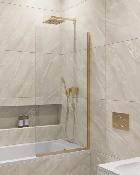 Шторка на ванну в профиле by Deonria C-140-80-8-T-G 80см золото/прозрачный
