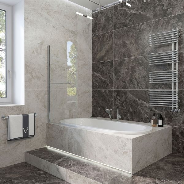 Шторка на ванну Veconi Palau PL-79B, 900x1500, хром, стекло прозрачное купить