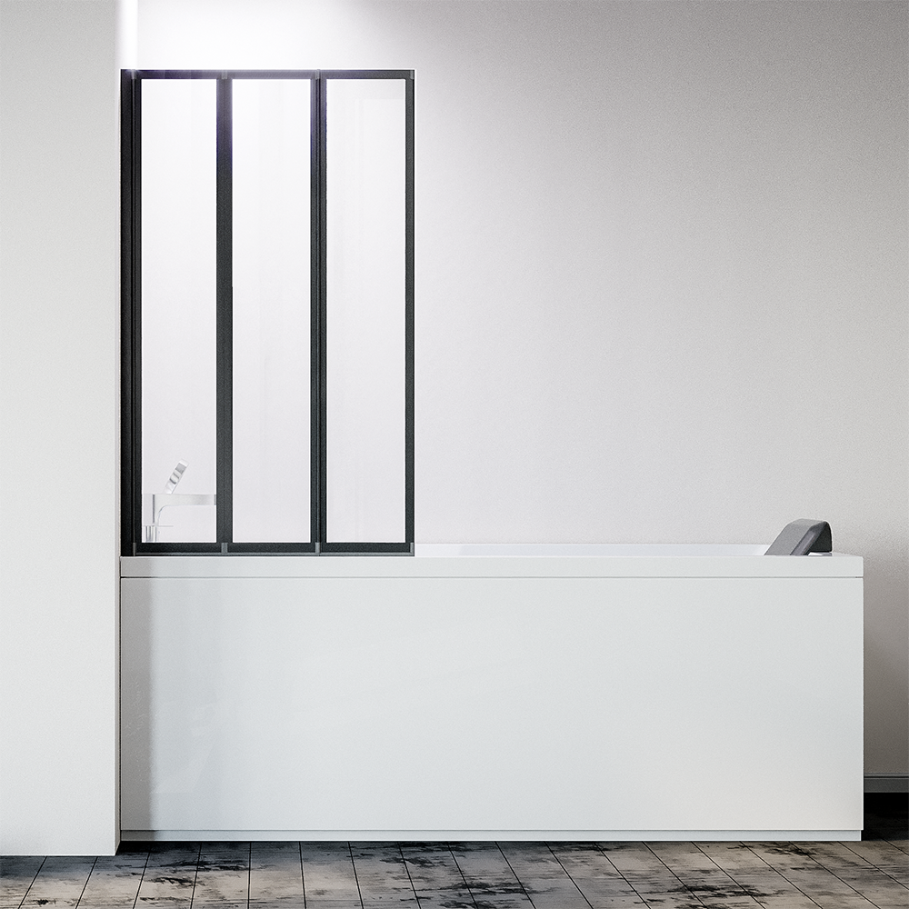 Шторка на ванну складная левая Veconi Palau, PL-73BL, 900x1500, черный матовый, прозрачное стекло купить