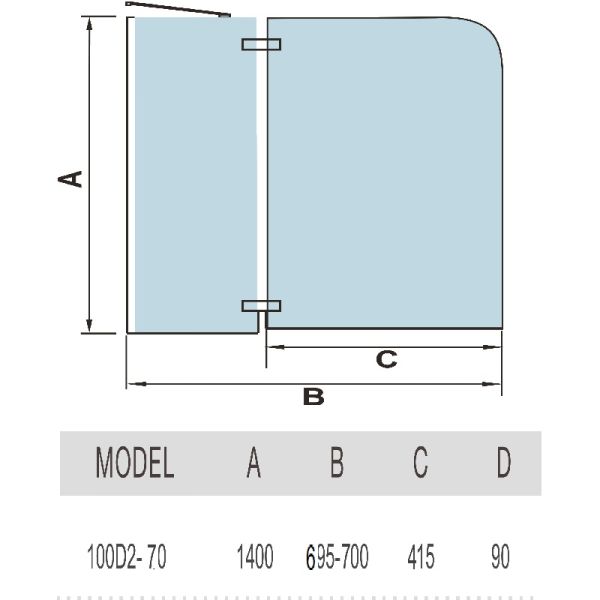Шторка на ванну WeltWasser СЕРИЯ WW100 Арт. 100D2-70