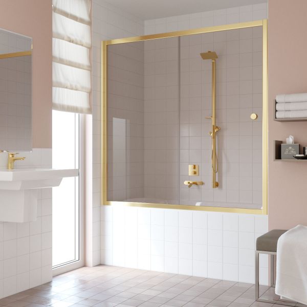 Шторка на ванну Vegas Glass ZV Tur Novo 170 09 01 профиль золото, стекло прозрачное (высота 1400мм) регулировка 168-173 купить